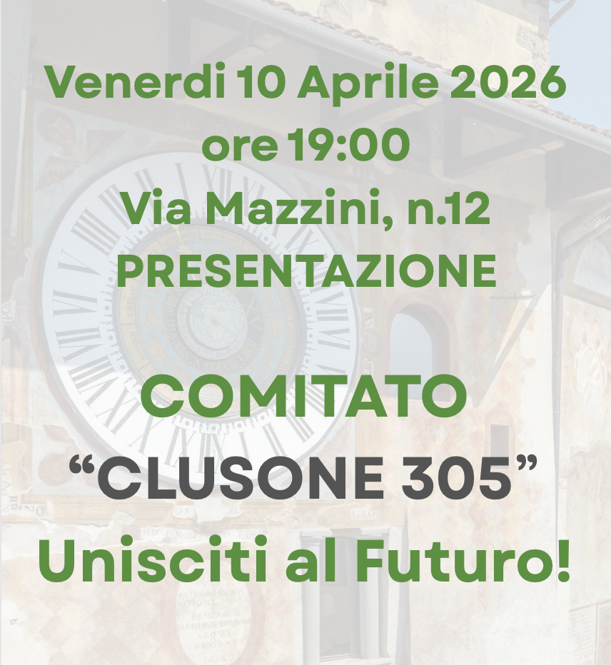 Il Comitato Futuro Nazionale – Clusone 305 nasce con l'obiettivo di dare voce a cittadini, professionisti, giovani e famiglie che credono in un'Italia più forte, libera e consapevole della propria identità.